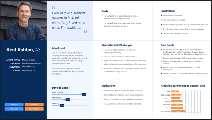 Deep Empathy: We complemented the survey with in-depth User Interviews with a home care agency manager and a senior to validate insights, surface gaps in care delivery, and enrich our understanding of the lived experience.